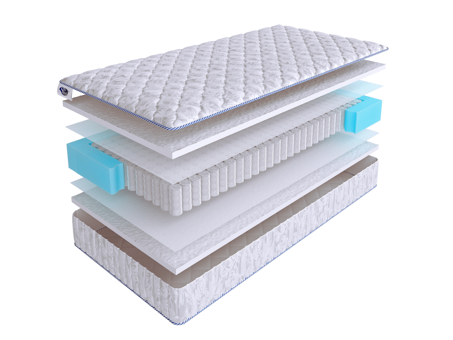 Чехол матраса выполнен из хлопкового жаккарда, простеганного на 100 г. синтепона.